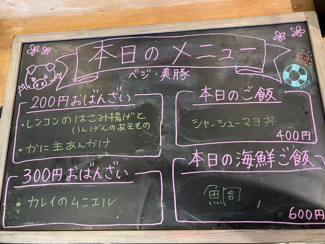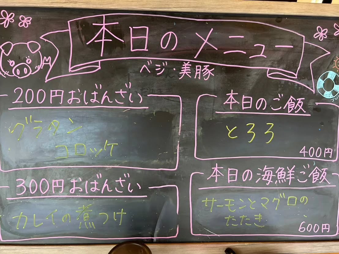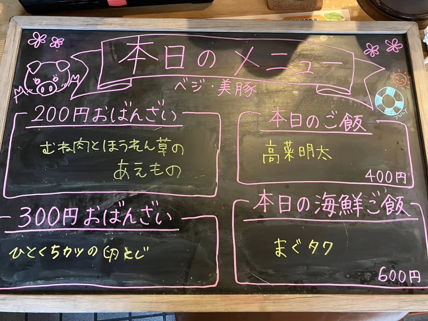 とても美味しかったです!! 初回なのでシンプルに豚汁。 ハーフでご飯中をお願いしました。 結果お腹いっぱい大満足です。 夏バージョンでオクラ、ヤングコーン、茄子、パプリカ、アスパラ等 驚くほど野菜が入ってて素晴らしい!! 豚バラもしっかり入っていて美味しかったです。 季節によって野菜の内容も変わるそうで、冬は豆乳も再開すると教えて下さいました。 そんなこと聞いたら何度も通いたくなる。 女性だけでなく、サラリーマンの方など老若男女いけるおみせだと思います。