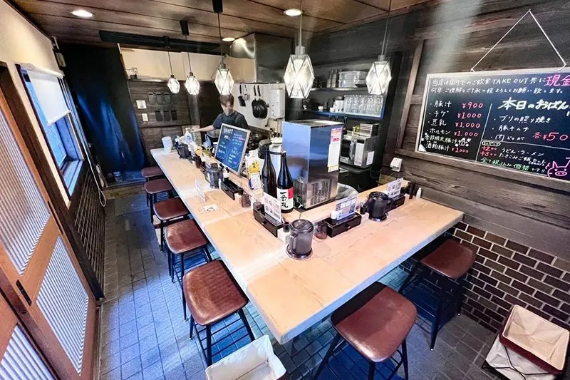 平日ランチで訪問。 カウンターのみで、店内狭いかな。 なので回転が早く、満席でも長時間待つことなさそうぉな感じ。 温かい豚汁を飲みたくて入ったのですが、注文の仕方が判らずメニューと暫くにらめっこ(^_^;) 日替わり系は黒板に書いていて、結局は豚汁ミニサイズと日替わりのシラスご飯に決定。この注文で満腹でした。