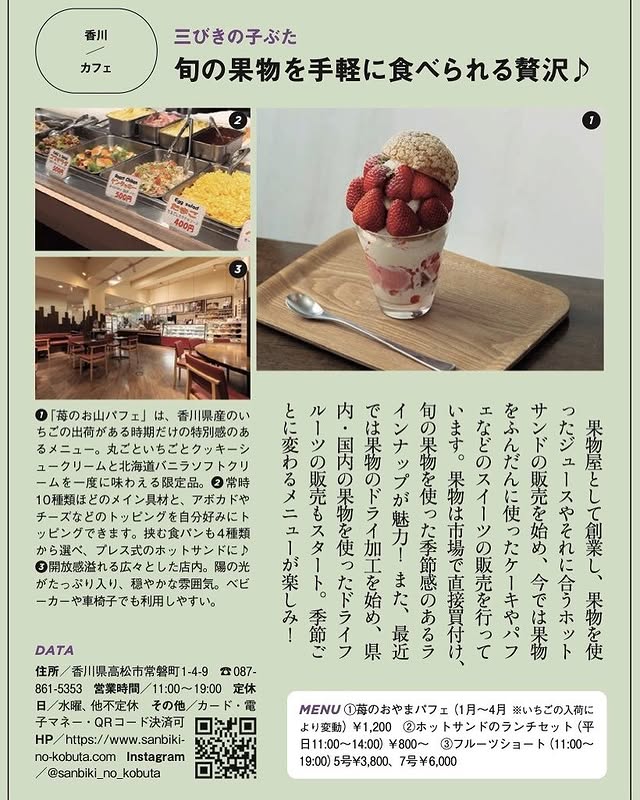 香川県高松市常磐町の店舗にて、お食事やスイーツ、果物の購入にご利用いただけるチケットです。プロの目利きで厳選した季節のフルーツをふんだんに使用したメニューをはじめ、人気のホットサンドなど豊富な品揃えです。店舗の全商品ご利用いただけます。